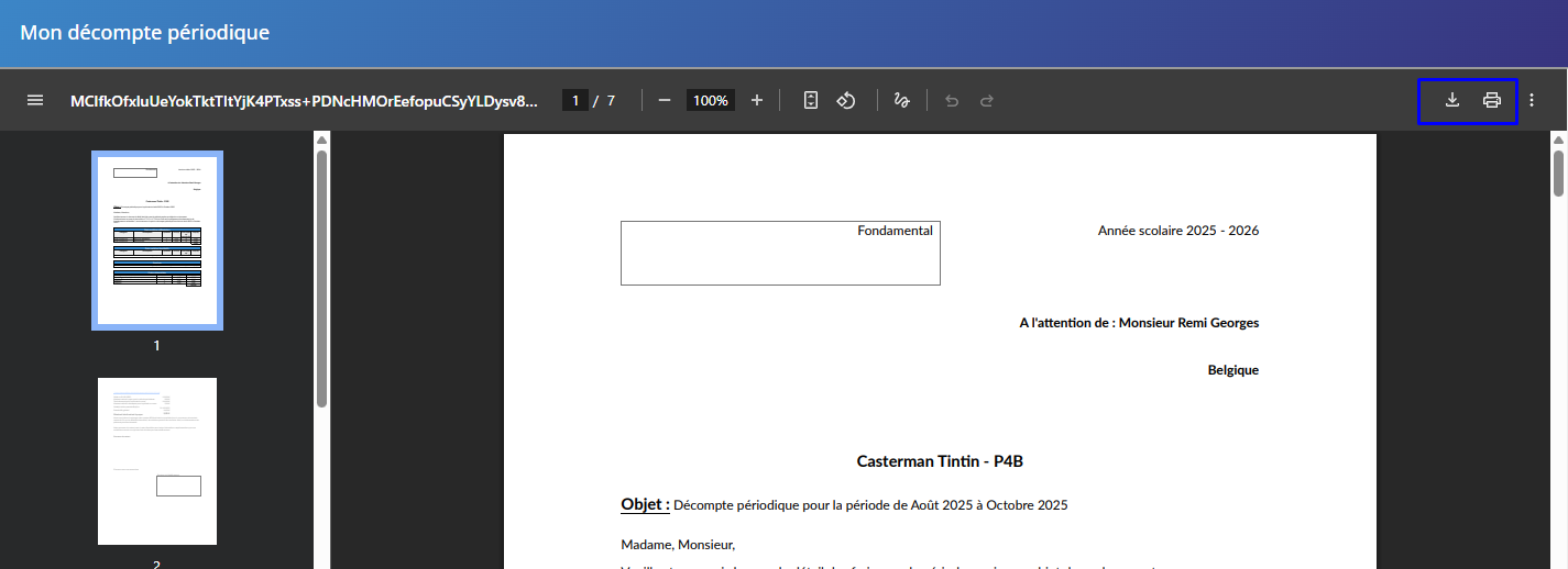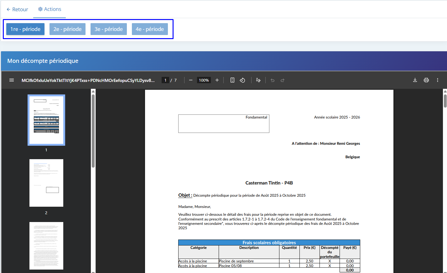 Le décompte périodique reprenant l'ensemble des frais de la période est à votre disposition en temps réel sur la plateforme.
